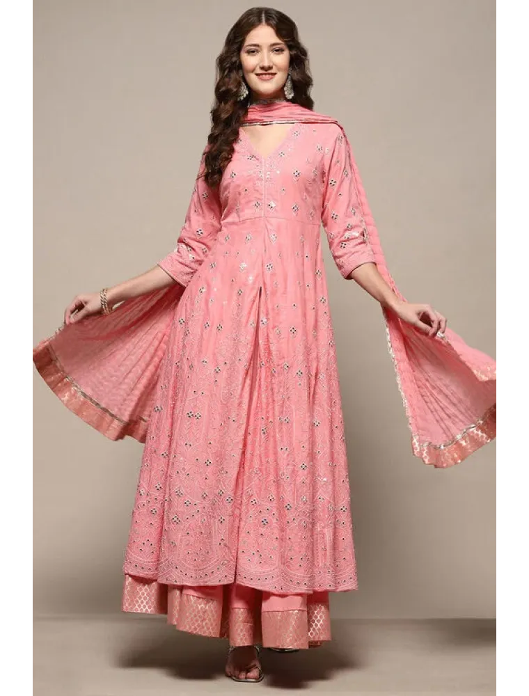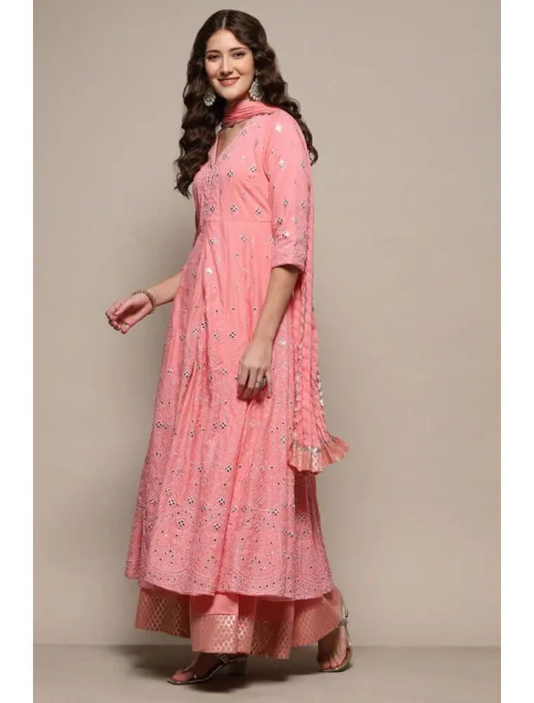 Introducing the timeless elegance of our pink Anarkali Lehenga set with a dupatta, perfect for your parties and gatherings.