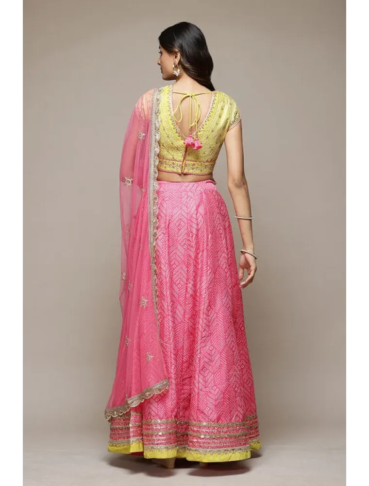 Fuschia & Lime Green Cotton Blend Lehenga Set