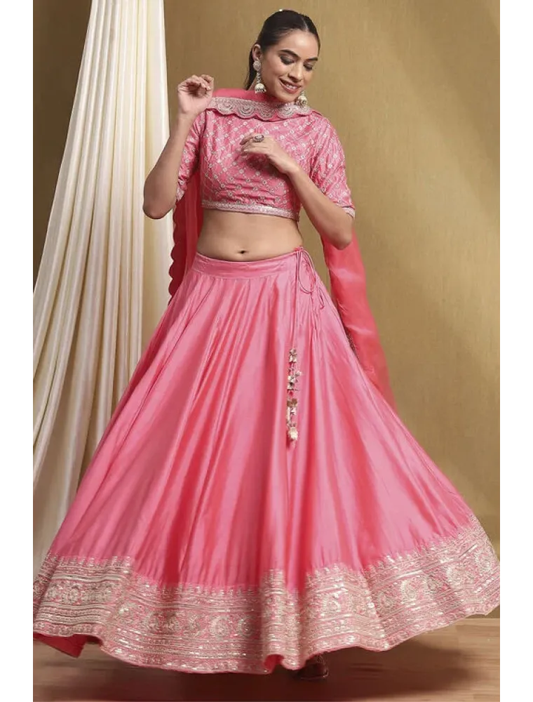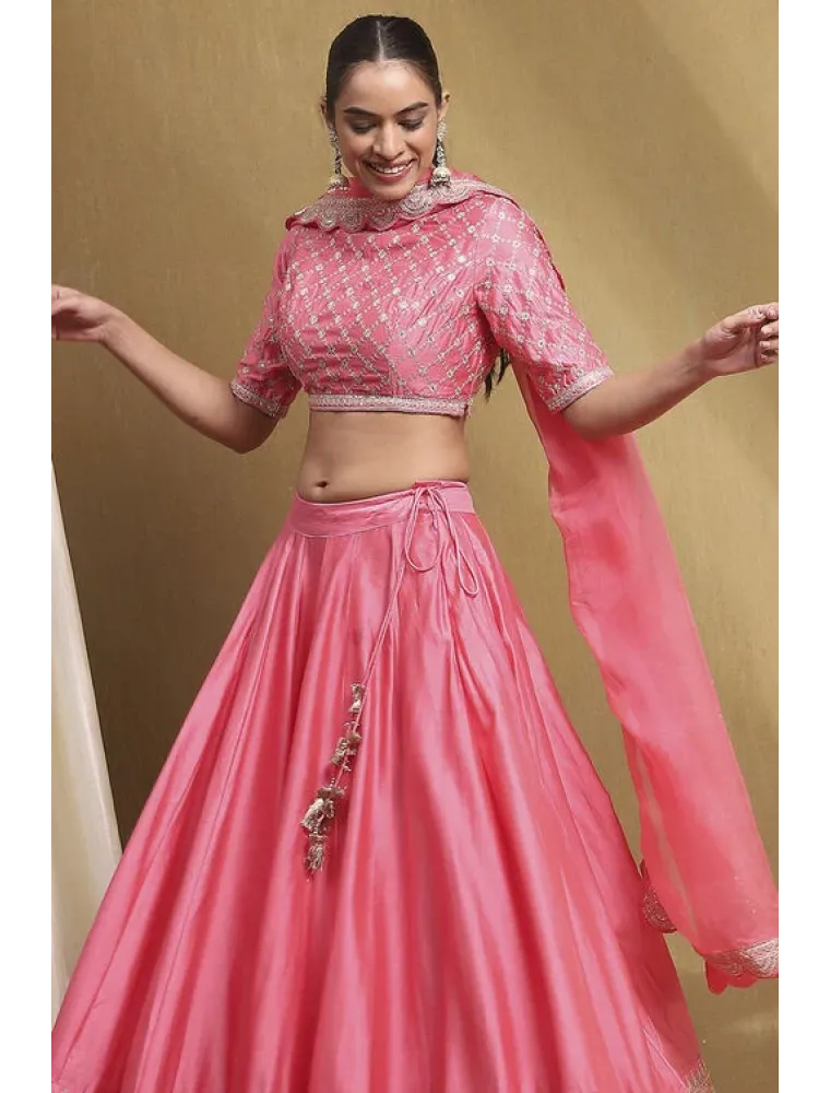 Coral Cotton Blend Straight Lehengas & Skirt Set