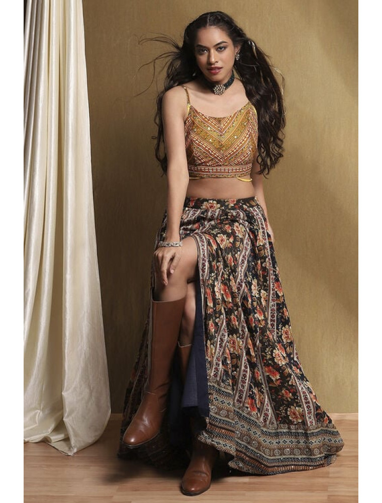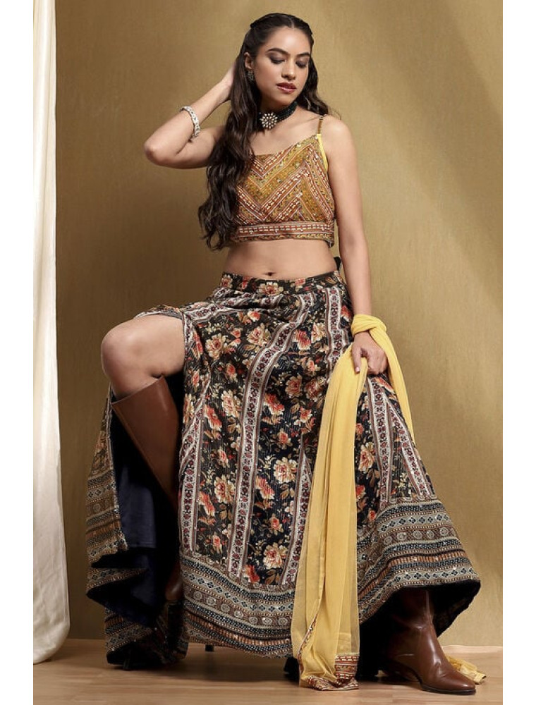 Navy Viscose Blend Lehenga Set
