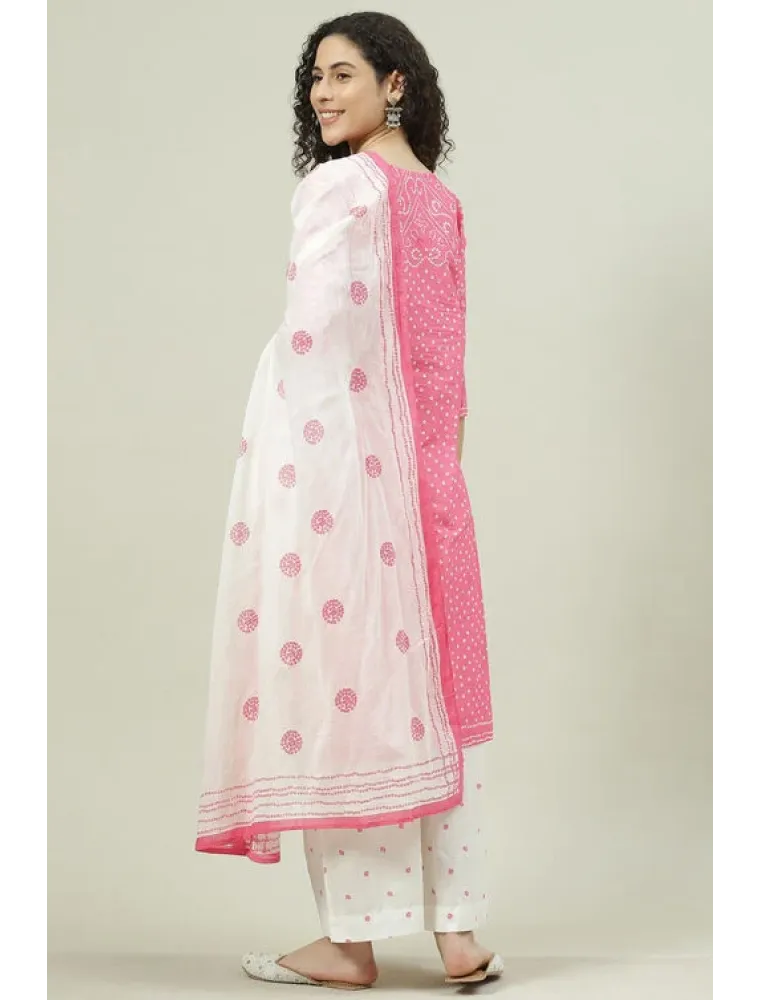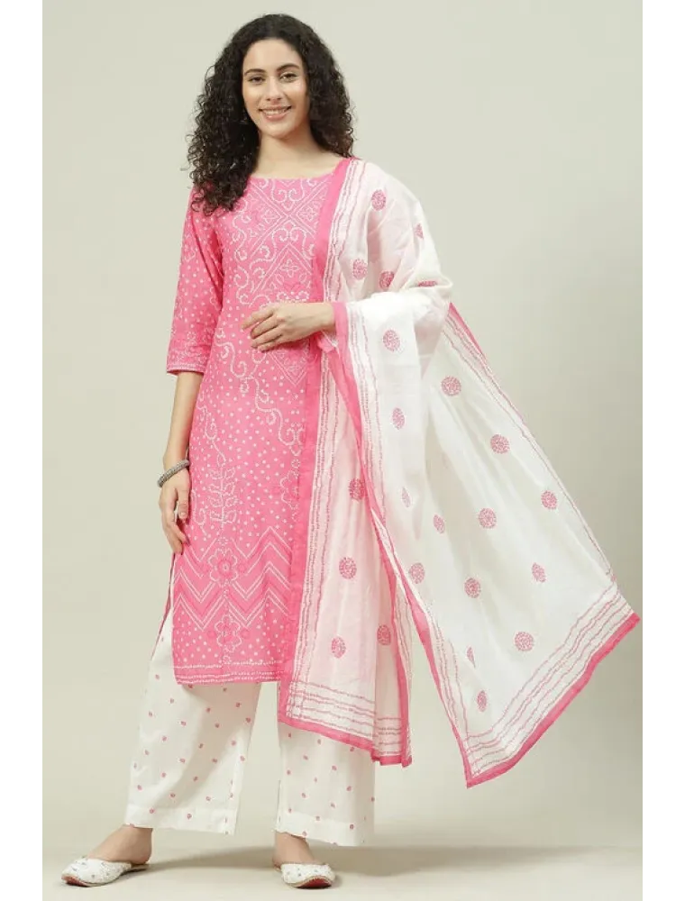 Pink Printed Cotton Straight Kurta Palazzo Suit Set