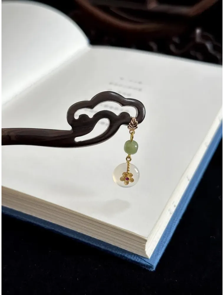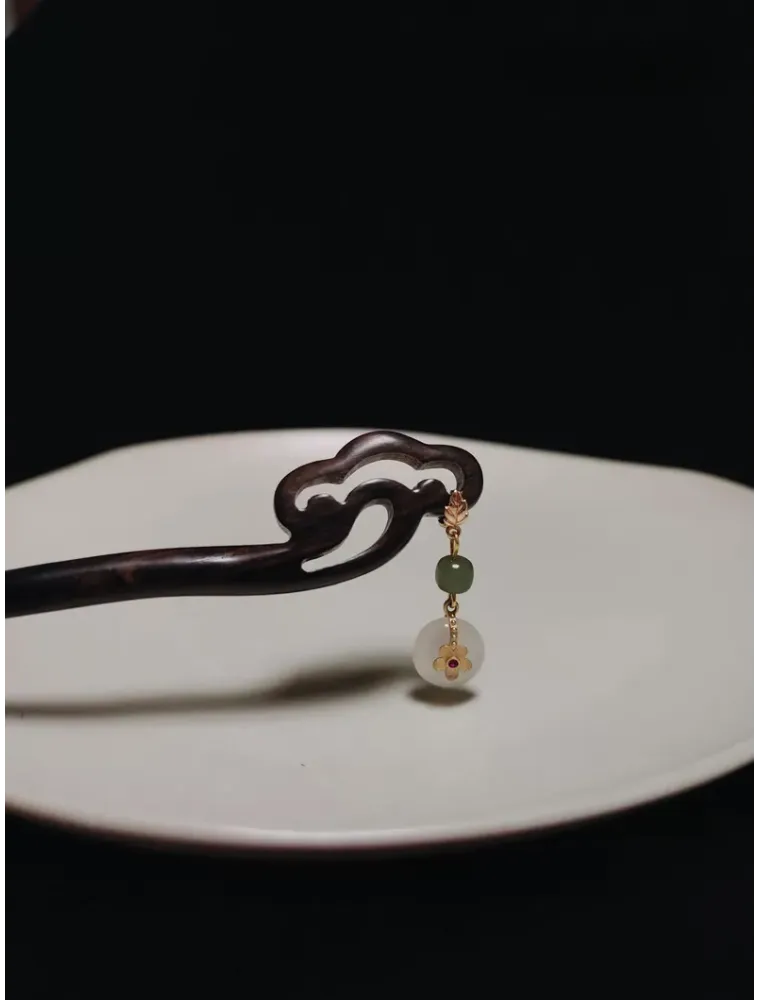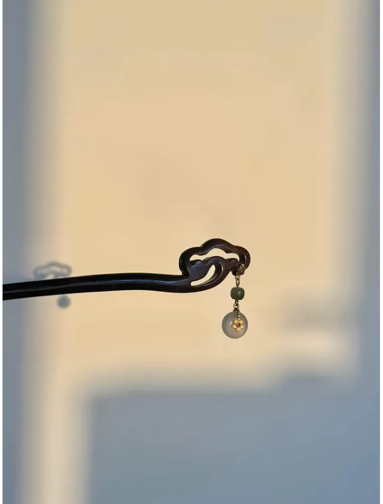 Original Design - Natural Jade and Ebony Wood Hairpin-Chinese Style