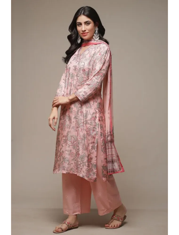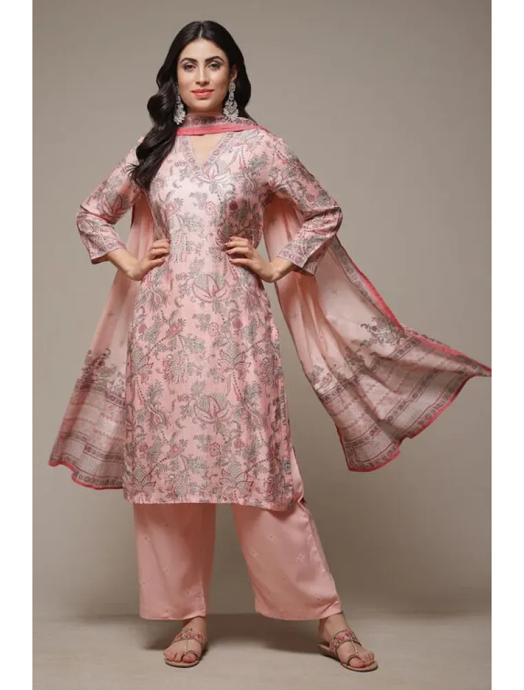 Beat the heat this summer with this meticulously created pink floral printed straight suit set. This is perfect for daytime festivities or small outings.